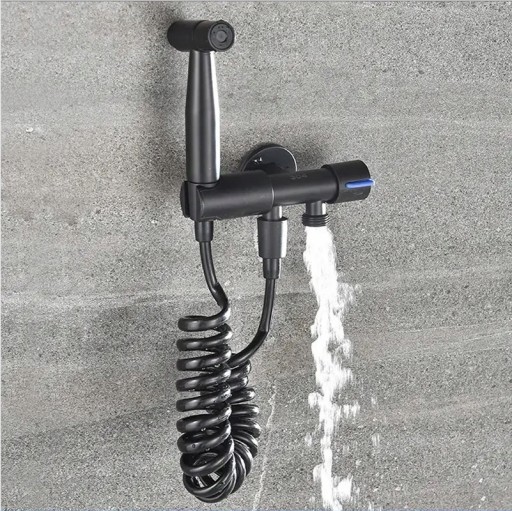 KOMPLETNY ZESTAW: Solidny zestaw prysznicowy bidetowy w komplecie z uchwytem ściennym wraz z materiałem montażowym i 2 uszczelkami. Długość bidetu: 15 cm - szerokość 5,7 cm / Kolor: czarny / Gwint ze stali nierdzewnej / Dźwignia ze stali nierdzewnej