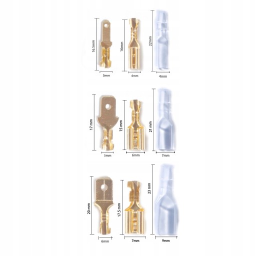 ⭐ Typ 2,8 mm: Grubość:0,25 mm (kobieta) 0,5 mm (mężczyzna) Kompatybilny przewód: 0,5-1,5 mm2 (AWG22-16)