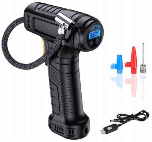POMPKA ELEKTRYCZNA ROWEROWA KOMPRESOR SAMOCHODOWY BEZPRZEWODOWY SPRĘŻARKA + Zestaw końcówek