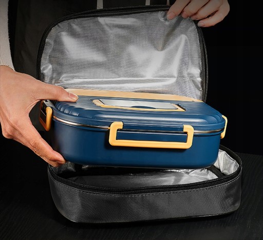 Szczegółowy projekt: Pokrywa jest wyposażona w rowek, w którym można umieścić sztućce, aby zapobiec ich zabrudzeniu. Pokrywa może być również używana jako uchwyt na telefon komórkowy. Z uchwytem, łatwy do przenoszenia. Pod pojemnik ze stali nierdzewnej można wlać trochę przegotowanej wody, aby uzyskać ciepłe jedzenie.