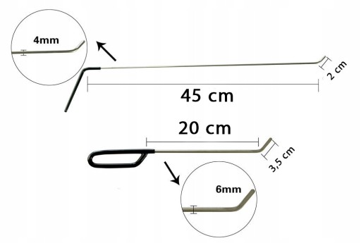 Narzędzia DRUTY / HAKI / LANCE / PRĘTY PDR służą do usuwania wgnieceń na karoserii samochodu. Narzędzia świetnie się sprawują przy innych naprawach wgnieceń powstałych na: (lodówkach, pralkach, drzwiach i tym podobnych powierzchniach blaszanych).