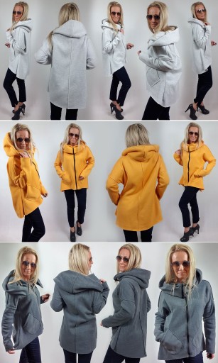 Asymetryczna bluza, tunika, kardigan z kapturem, który można ułożyć na wiele sposobów.