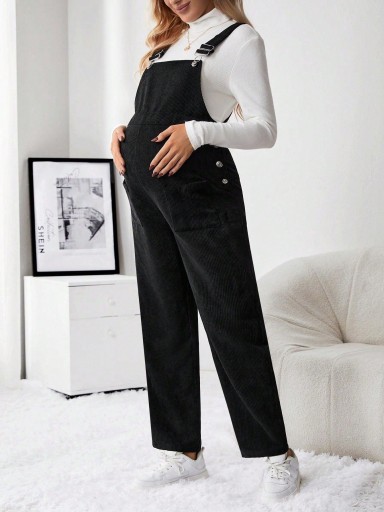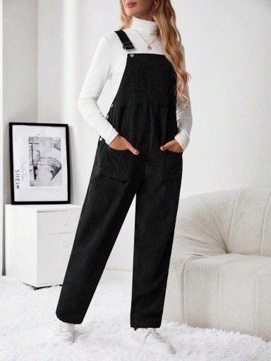 БРЮКИ-КОМБИНЕРЫ ДЛЯ МАТЕРИАЛОВ, ЧЕРНЫЕ, ДЛИННЫЕ, ПРЯМЫЕ, SHEIN 38