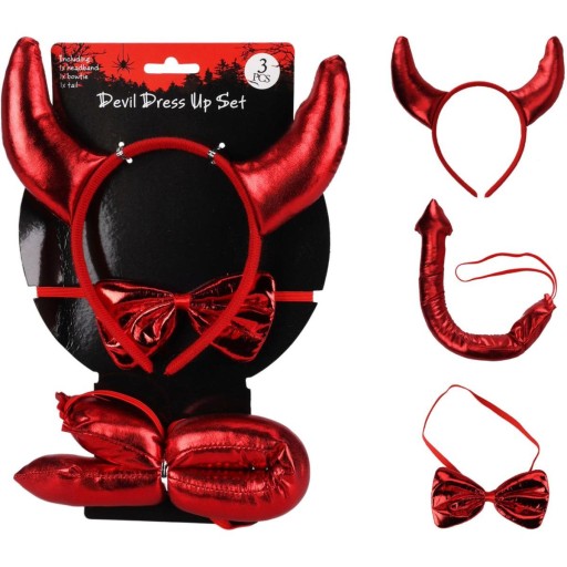 ZESTAW DIABEŁEK NA HALLOWEEN to proste, ale skuteczne przebranie, które pozwoli Ci na szybkie przekształcenie się w zabawnego i psotnego diabełka!