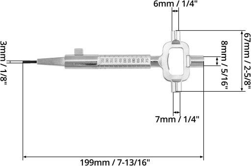 ③Wygodna proporcja: Wygodna skala za kwadratowym kluczem imbusowym do pomiaru długości cylindra od 22 do 75 mm