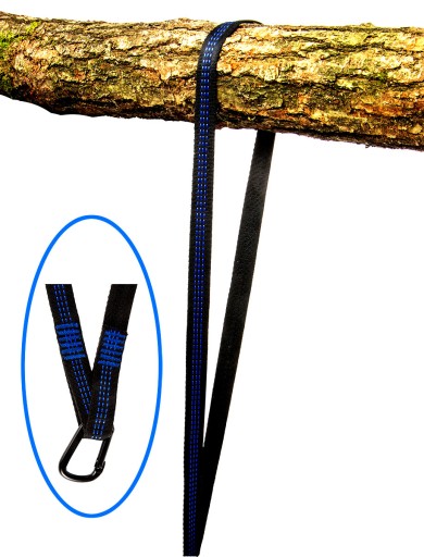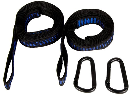 Taśmy posiadają pętle mocujące, co znacznie ułatwia wieszanie hamaka.
