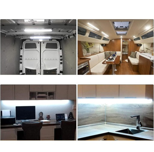 Każda taśma LED 12 V oferuje 700 lm 6500 K białego światła wewnątrz, co jest bardzo dobre dla ciężarówek, łodzi, przyczep kempingowych, przyczep, furgonetek, trójkołowców. Stosowana również do oświetlenia awaryjnego, oświetlenia kempingowego, oświetlenia wnętrza pojazdu i oświetlenia operacyjnego w terenie itp.