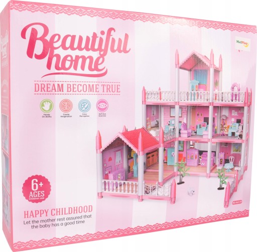 Super prezent - marzenie każdej dziewczynki. Wyjątkowy, wykonany z plastiku domek dla lalek, doskonały na wielogodzinną zabawę dla każdej dziewczynki i jej koleżanek. Domek idealnie nadaje się dla lalek, które w tej rezydencji będą czuły się jak w pałacu. Produkt wykonany został nie tylko z dbałością o bezpieczeństwo zabawy dziecka ale też z dbałością o szczegóły.