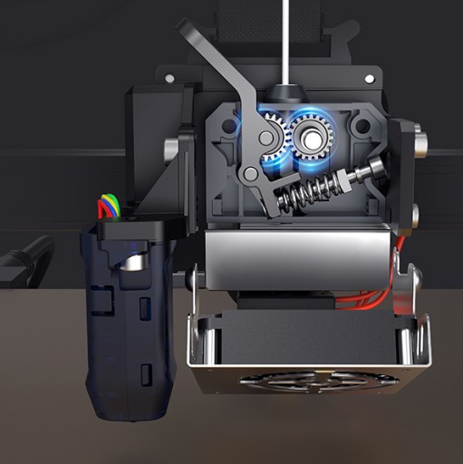 Innowacyjna wytłaczarka bezpośrednia: całkowicie metalowa, dwubiegowa wytłaczarka bezpośrednia „Sprite” o sile wytłaczania 80 N jest trwała i umożliwia płynne podawanie. Obsługuje szeroką gamę filamentów i dobrze sprawdza się nawet podczas drukowania z elastycznymi filamentami, takimi jak TPU.