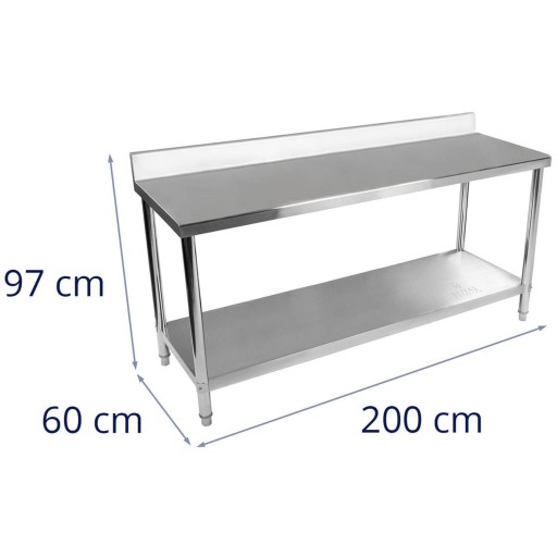 ✅ Stół roboczy – 200 x 60 cm – 195 kg – stal nierdzewna – rant