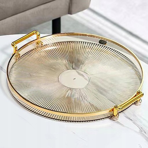 Wydłużony złoty uchwyt: okrągła ozdobna taca z uchwytem, bardziej wytrzymała i trwała, taca z uchwytem ma gładkie i naturalne linie, lekka, wygodna obsługa