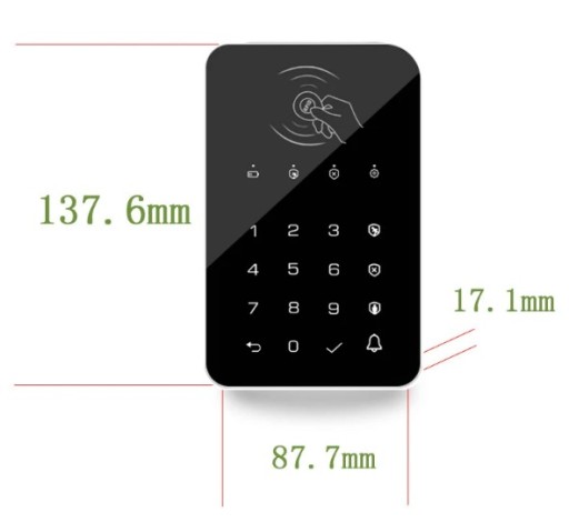 Bezprzewodowa klawiatura/manipulator wraz z brelokami RFID do zdalnego sterowania systemem alarmowym + funkcja bezprzewodowego dzwonka do drzwi w połączeniu np. z systemem alarmowym AlarmZone P70-4G