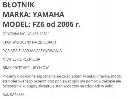 . КОЛЕСНАЯ АРКА КРЫЛО 4S8-21511 YAMAHA FZ6 FZ 6 600 06 +