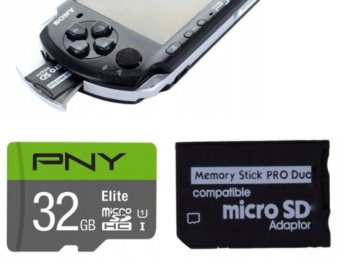 Karta pamięci 32GB microSDHC class 10 + Adapter MS PRO DUO do konsoli PSP
