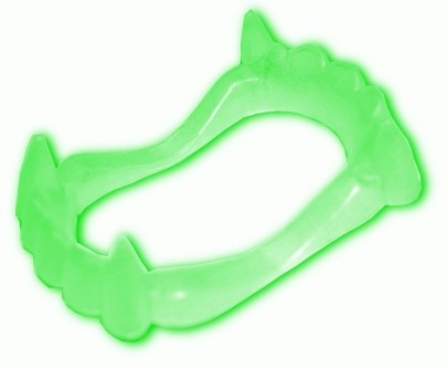 Świecące w nocy, wykonane z miękkiego gumowanego materiału zęby z kłami.