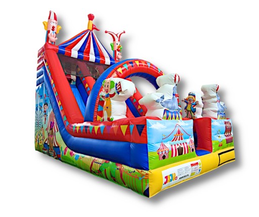 Przedmiotem oferty jest Dmuchana zjeżdżalnia Cyrk 2. Idealna dla dzieci od 3 do 14 roku życia.