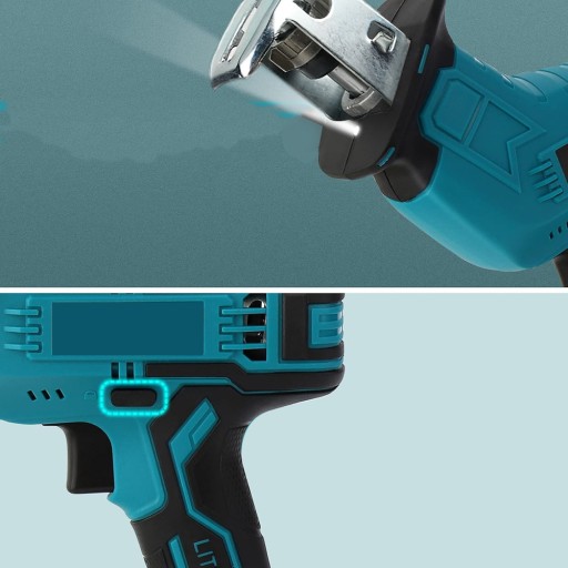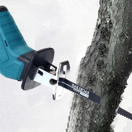 Zestaw pił szablastych z akumulatorem ma wytrzymałą, samoblokującą się rękojeść. Wystarczy obrócić rękojeść, włożyć ostrze piły i je zwolnić, a ostrze piły automatycznie się zaciśnie, prosto i solidnie.