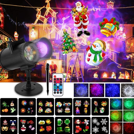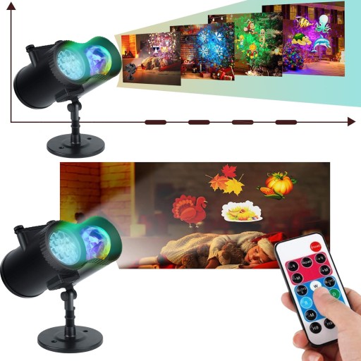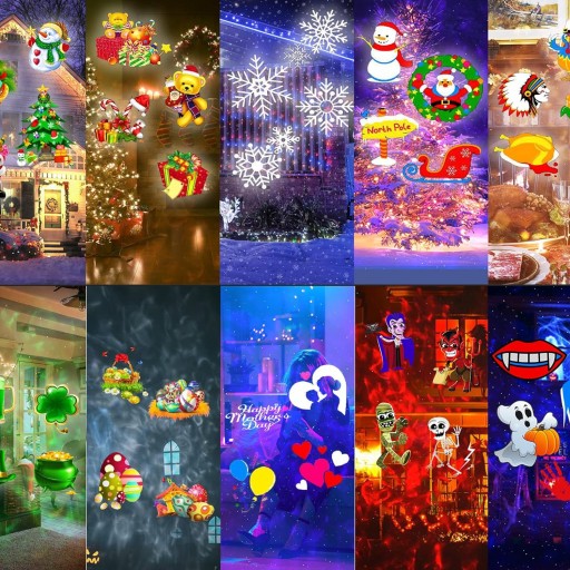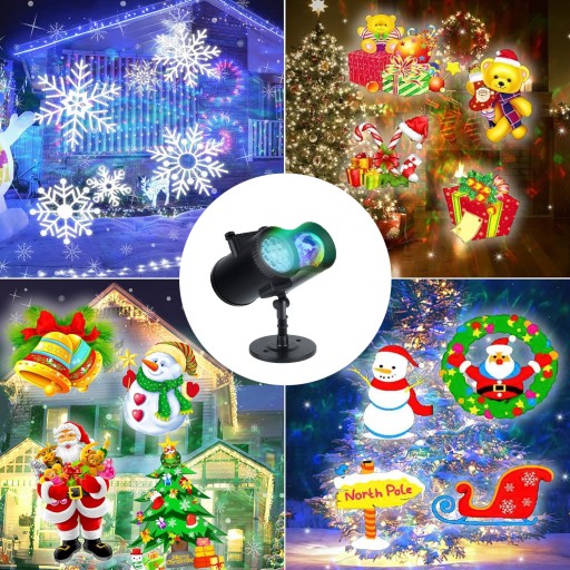 - Lampy projekcyjne LED łączą płatki śniegu, jelenie david, pisanki, święty mikołaj itp., aby stworzyć atmosferę Halloween/Boże Narodzenie dla dodatkowej zabawy.