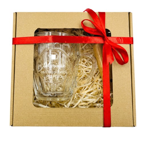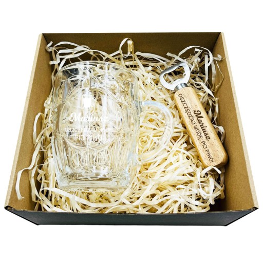 Zestaw do piwa z własnym grawerem kufel + otwieracz - wyjątkowy prezent dla faceta chłopaka męża taty
