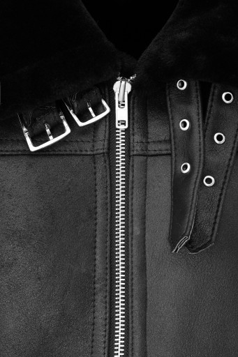 Męski kożuch wykonany w formie pilotki. Uszyty z wysokiej jakości naturalnej skóry jagnięcej kożuchowej, w czarnym kolorze. Zapinany na suwak, posiada kieszenie po obu stronach zapinane na suwak. Wykładany kołnierz w formie wysokiej stójki zapewnia doskonałą ochronę przed wiatrem.