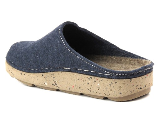 Spód wykonany jest z lekkiego i elastycznego tworzywa, w 100% pochodzącego z recyklingu, które doskonale amortyzuje stopę. Wkładka wyprofilowana, pokryta ciepłym i milutkim filcem, odpowiada anatomicznej budowie stopy.