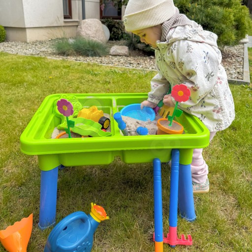 Stół Wodny 2w1Piaskownica od marki WOOPIE to doskonała zabawka, która zapewni dzieciom niezliczone godziny zabawy z wodą i piaskiem. W skład zestawu wchodzi aż 13 różnorodnych akcesoriów, takich jak: foremka, konewka, koparka oraz dwie łopatki. Stolik posiada dwa wgłębienia – jedno można wypełnić wodą, a drugie piaskiem, co pozwala na kreatywną zabawę w dowolnym miejscu. Zestaw idealnie sprawdza się zarówno w domu, jak i na plaży czy w piaskownicy. Ten wszechstronny zestaw umożliwia dzieciom tworzenie nieograniczonych scenariuszy zabaw, pobudzając ich wyobraźnię i rozwijając umiejętnościmanualne. Idealny do twórczej zabawy zarówno wewnątrz, jak i na świeżym powietrzu!