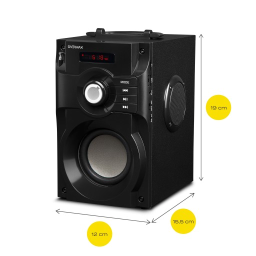 Głośnik bezprzewodowy Overmax Soundbeat 2.0 został wyposażony w sumie w trzy wysokiej jakości głośniki o łącznej mocy 15W RMS: