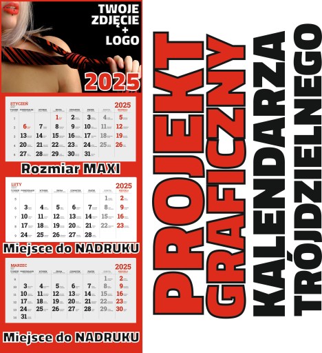 Wśród naszych innych ofert możesz dokonać zakupu usługi wykonania projektu kalendarza trójdzielnego. Taki projekt będzie można wykorzystać przy druku kalendarzy zakupionych na niniejszej ofercie. Naszych klientów obsługujemy kompleksowo - od projektu po druk.