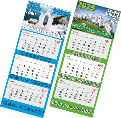 KALENDARZ TRÓJDZIELNY 2025 - model MAXI z WYPUKŁĄ główką - 25 sztuk
