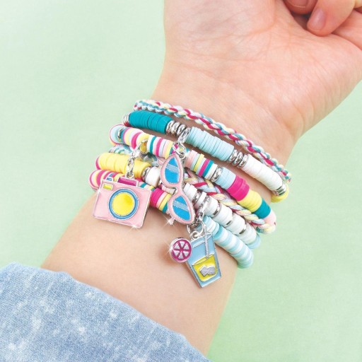 Dowiedz się, jak stworzyć pięć wyjątkowych bransoletek z koralikami heishi, korzystając z niezwykłego zestawu do robienia biżuterii, w którym znajdziesz aż 528 elementów i specjalny warsztacik PlayTray.