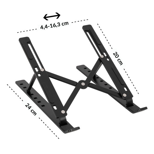 ✔ Regulacja ramion pozwala umieścić na podstawce urządzenia o różnych gabarytach: laptopy, tablety, ale również telefony - rozstaw ramion: 4,5 - 16,5 cm