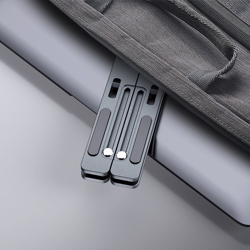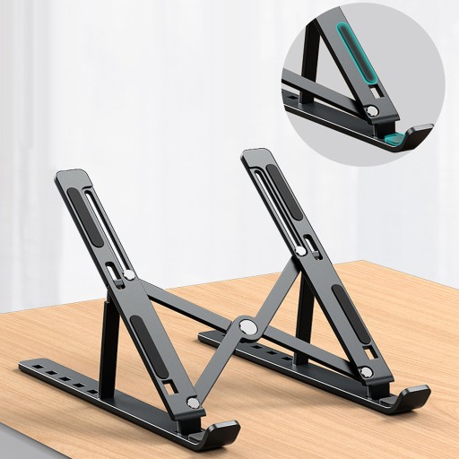 Stojak jest składany, dzięki czemu po złożeniu ma bardzo małe gabaryty. Zmieści się do każdej szuflady czy torby na laptopa.