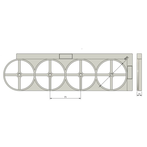 ✔ jednorazowo umożliwia wyznaczenie 4 otworów o rozstawie 71 mm,