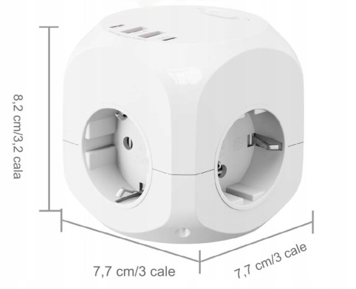 Listwa zasilająca 8w1 wyposażona w 2 porty USB A (5 V/2,4 A) i 2 USB-C (5 V/3 A) do szybkiego ładowania wielu urządzeń, rozszerzenie wtyczki 4 gniazda, które obsługuje maksymalną moc wyjściową łącznie 4000 W/16 A.