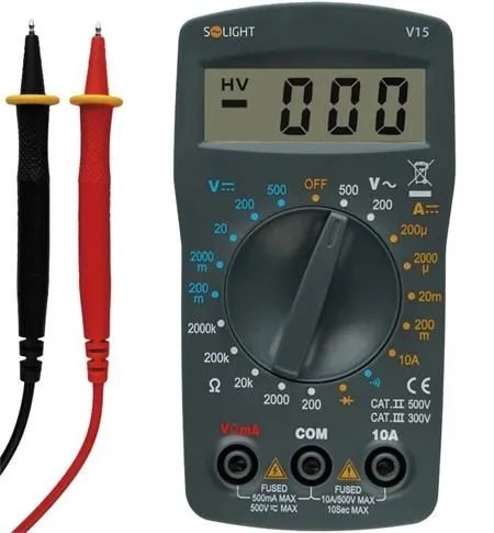 Мультиметр Solight, макс. 500 В переменного тока, макс. 500 В постоянного тока/10 А, проверка диодов, зуммер V15