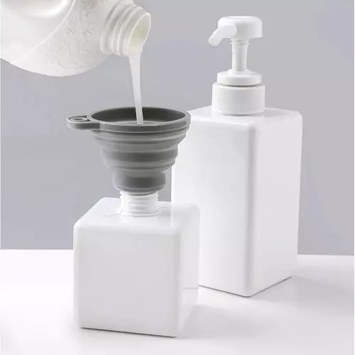 - SPECYFIKACJA - kolor: szary; materiał: silikon; składany: tak; możliwość zawieszenia: tak; wymiary: 7x8cm; średnica wlewu: 6,5cm; średnica wylewu: 1,1cm; waga: 0,02kg; waga w opakowaniu: 0,026kg.
