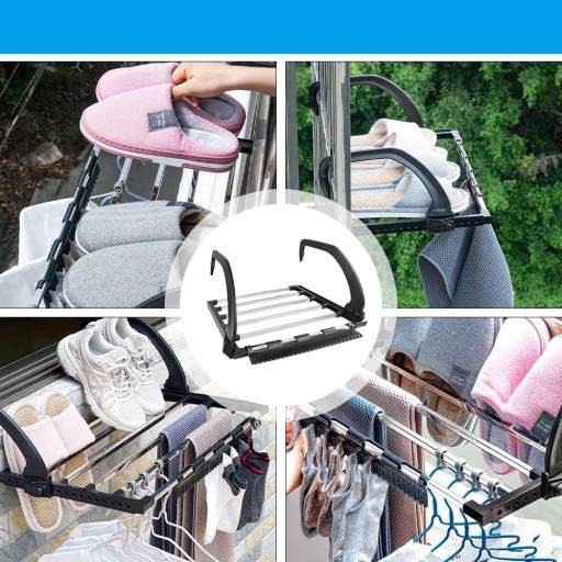 ✅ Nadaje się do użytku wewnątrz i na zewnątrz: wielofunkcyjny stojak do suszenia ubrań balkonowych jest składany, idealny do użytku wewnątrz i na zewnątrz. Wieszaki mogą być używane do suszenia ubrań i innych przedmiotów, takich jak buty, skarpety, ręczniki itp. Może być również stosowany jako regał balkonowy dla roślin doniczkowych. Przechowuj czasopisma, okulary, pilot zdalnego sterowania itp. na łóżku. Może być również stosowana pod prysznicem, na balkonie, ogrodzeniu, balustradach, korytarzu itd.
