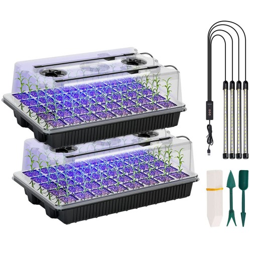 Kompletny zestaw startowy do nasion zawiera - 2 x tacki na nasiona (40 komórek na tacę), 2 x kopułę nawilżającą, 4 x oświetlenie do uprawy roślin (20 diod LED na lampę), 1 x inteligentny system sterowania (przewód sterujący 2,1 m), 2 x wodoszczelne Taca podstawowa, 20 x plastikowe etykiety na rośliny, 2 x narzędzia do roślin. Idealny do rozpoczynania nasion, kiełkowania nasion, sadzonek, sadzonek sukulentów lub rozmnażania other klonów roślin.