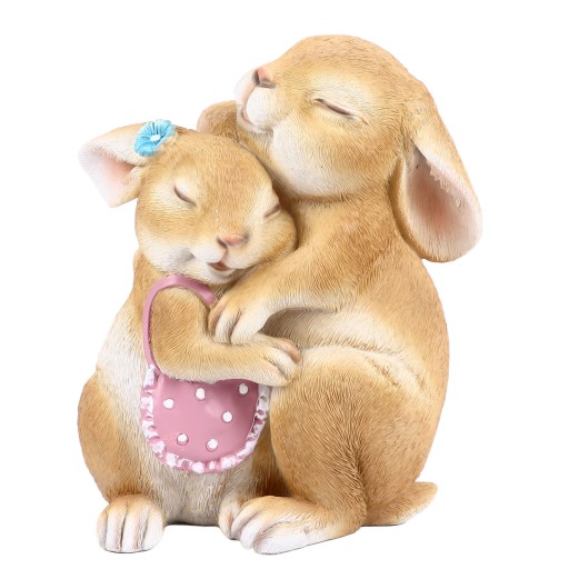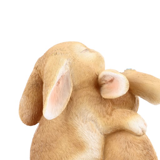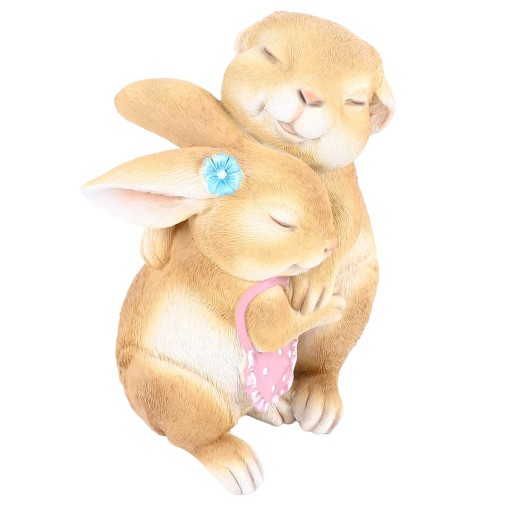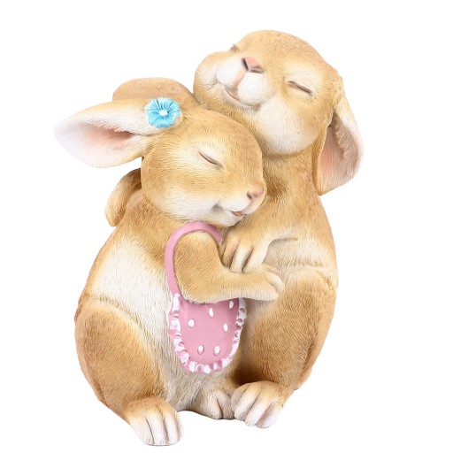 2. [Uroczy wygląd]: Figurka królika ogrodowego ma uroczą konstrukcję z wesołymi uśmiechami, długimi uszami i uściskiem, przedstawiając podnoszący na duchu i realistyczny moment pomiędzy dwoma królikami.