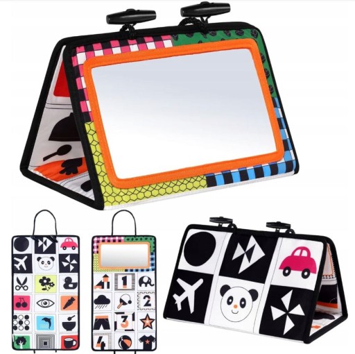 DUŻA KSIĄŻECZKA SENSORYCZNA Z LUSTERKIEM KONTRASTOWA MIĘKKA NAUKA WIDZENIA