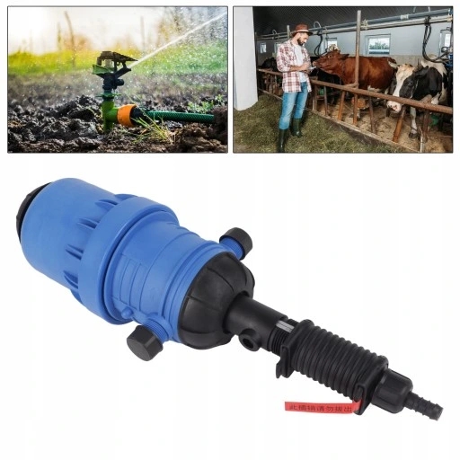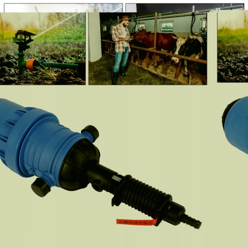 Specyfikacja: Typ artykułu: Wtryskiwacz do nawozów ogrodowych Materiał: tworzywo sztuczne, guma Zastosowanie: Automatyczne urządzenie dozujące do hodowli Zakres współczynnika: 0,4%-4% (1:25-1:250) Zakres przepływu: 20-2500 l/h Kaliber wody wlotowej i wylotowej: 32 mm/1,3 cala, 25 mm/1,0 cala Temperatura przepływu wody: 4-30°C Główne obszary zastosowań: 1.) Przemysł hodowlany: Stałe dawkowanie proporcjonalne w opiece zdrowotnej dla zwierząt hodowlanych i drobiu dla kurcząt, kaczek, bydła, świń itp. 2.) Przemysł ogrodniczy: nawożenie, przechowywanie, zwalczanie szkodników kwiatów, owoców i warzyw itp. 3.) Dziedzina przemysłowa: uzdatnianie wody, przemysł chemiczny, obróbka metali, gaszenie pożarów itp. 4.) Dezodoryzacja, chłodzenie, smarowanie itp. Specjalne rozpuszczalniki o stałym stosunku rozcieńczania 5.) Myjnia samochodowa, drukarnia, szpital, przemysł winiarski i inne branże itp.