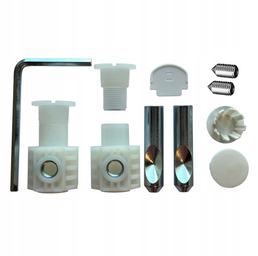 Zestaw elementów mocujących ułatwiających montaż toalet i bidetów.