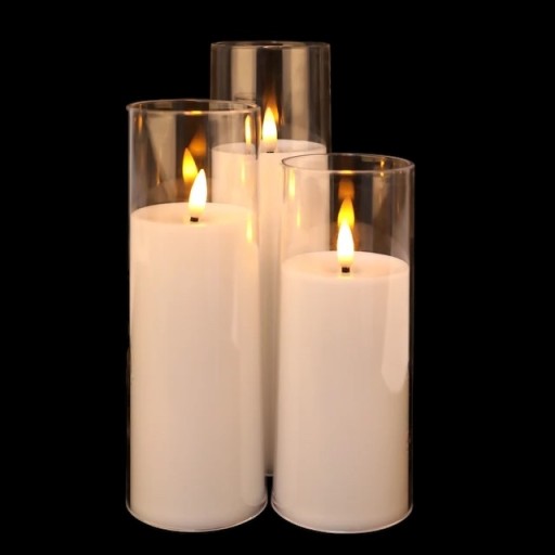 Zestaw 3 świeczek dekoracyjnych z migającym stałym knotem imitującym prawdziwy płomień za pomocą diody LED. Świeczkę można wykorzystać jako wkład do tradycyjnych zniczy. Świeci znacznie dłużej niż zwykłe wkłady oraz jest odporna na wiatr, co jest dodatkową zaletą.