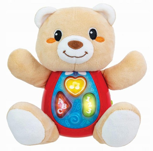 Przytulaczek stanie się przewodnikiem po świecie wesołych melodyjek, które zachęcą do eksperymentowania.Kolorowe światełka, ciekawe dźwięki oraz frazy mówione po polsku pozwolą maluchowi na kreatywną zabawę.Na brzuszku zwierzątka znajdują się trzy kolorowe przyciski funkcyjne, które uruchamiają różne melodie oraz uczą dzieci 3 cyfr i 3 liter.Cechy Maskotki:uczy podstaw alfabetu i cyfrgra wesołe melodyjkizachęca do zabawyWiek: 3m +Baterie: 2 x AA 1,5 V. (dołączone).