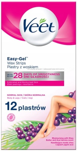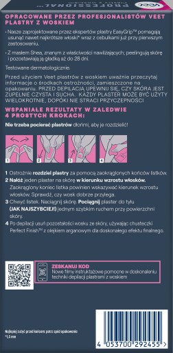 Plastry VEET PROFESSIONAL Wosk Depilacja Nogi Ciało 12 szt. Skóra Normalna