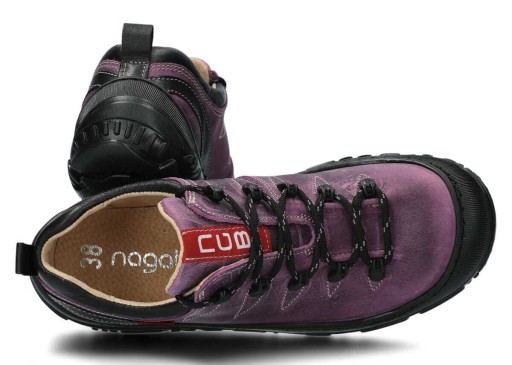 NAGABA 241 FIOLET - WYGODNE, SKÓRZANE PÓŁBUTY TREKKINGOWE DAMSKIE