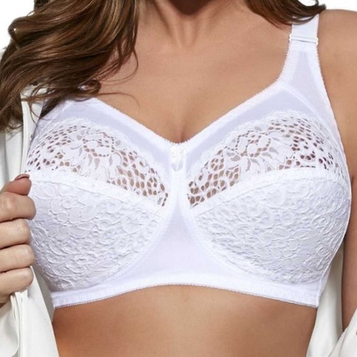 Elegancka koronka, od spodu wyściółka z miękkiej bawełnianej dzianiny zapewniają komfort noszenia. Wzór biustonosza został opatentowany przez wzgląd na unikalną konstrukcję, zapewniającą stabilność i wygodę godną polecenia szczególnie dla Pań o dużym biuście.
