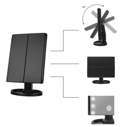 LUSTERKO KOSMETYCZNE PODŚWIETLANE ROZKŁADANE LED DO MAKIJAŻU POWIĘKSZAJĄCE