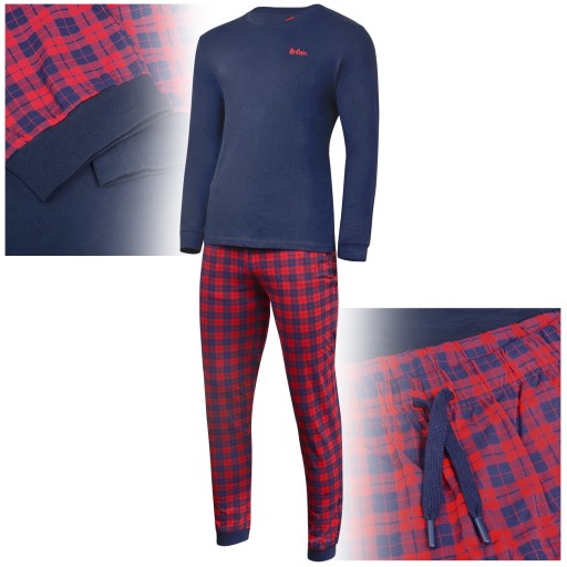 Lee Cooper Piżama Męska Bawełniana Długa Krata Granat 2025 Logo Rozmiar M