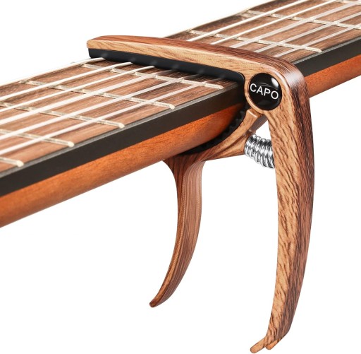 ✅ Estetyczny wygląd: Kapodaster w kolorze jasnego drewna doskonale komponuje się z różnymi stylami gitar.